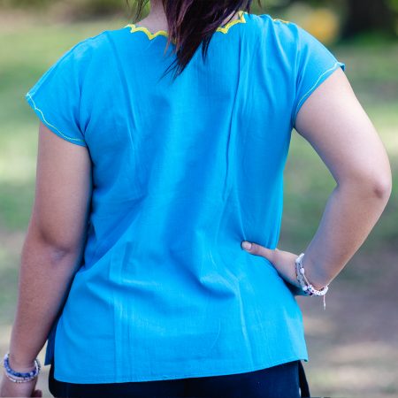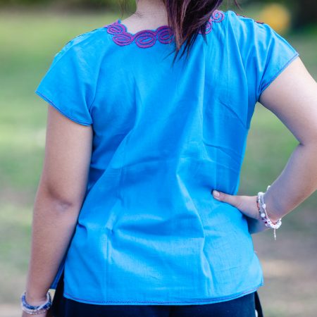 blusa campesina azul talla S-M